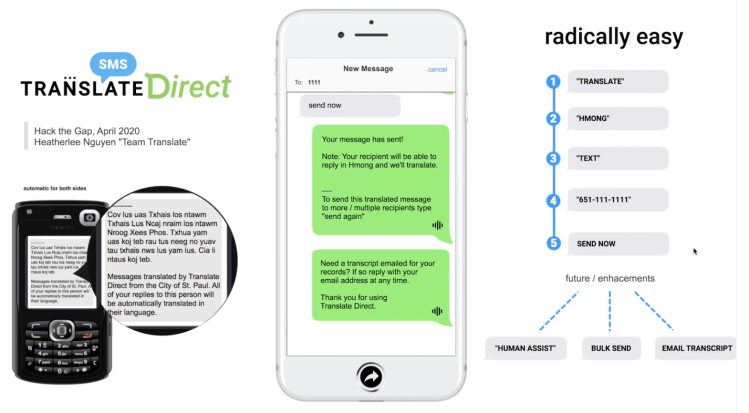 After witnessing the disparities in online schooling during the pandemic at her kids’ multi-cultured school, Heatherlee got curious. She wanted to help school staff get efficiently translated communications to non-English speaking families in a better way, with smartphones or not. She won 1st place at the 2020 Hack the Gap hackathon for the concept she originally presented as “Translate Direct.” [See winning concept for Metta Messaging here.] After months of research, she decided not to pursue this idea, but people still ask her about it to this day!